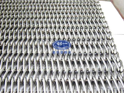 特點:此網帶由雙股左螺旋或雙股右螺旋盤條與一根串條連接而成,網帶拼接方便,網眼一般小于單股加強編織的網眼,編織牢固,不易變形,維修方便。平衡型編織網帶集中了金屬編織網帶的各種優點,由于具有彎曲教深的串條,使各個螺旋盤條的能得到正確的定位,因此,最大限度的減少網帶的變形和延伸。