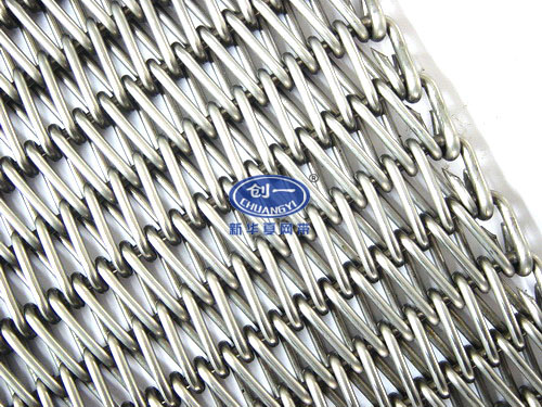 特點:此網帶由雙股左螺旋或雙股右螺旋盤條與一根串條連接而成,網帶拼接方便,網眼一般小于單股加強編織的網眼,編織牢固,不易變形,維修方便。平衡型編織網帶集中了金屬編織網帶的各種優點,由于具有彎曲教深的串條,使各個螺旋盤條的能得到正確的定位,因此,最大限度的減少網帶的變形和延伸。